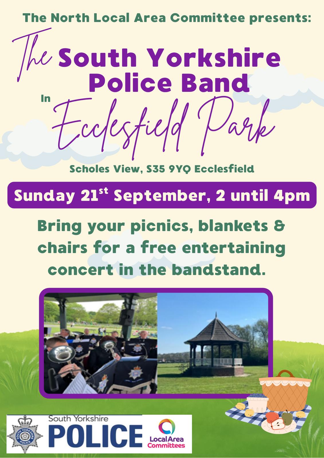 Join us for a fantastic afternoon of live music in the heart of Ecclesfield Park as the South Yorkshire Police Band returns to entertain the community with a rousing mix of classics, marches, and popular favourites.