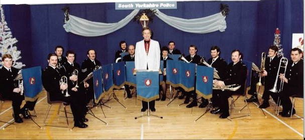 In 1979 the then Chief Constable Brownlow decided a band would be formed. Initially, funds could only supply 12 instruments, and Derek Ashmore was appointed musical director. The band consisted of Police Officers, Cadets and Special Constables and performed mainly at Police and Civic events. Early photographs show the band participating in events at the Central Methodist Hall, Victoria Street, Sheffield, Sheffield Lord mayors Parade and an event at Barnsley Civic Theatre, featuring a group called the “Barnsley bucket bashers”. In 1989 the band made its first foreign trio to Swabish Gmund, Aalen, West Germany, as part of the Barnsley twin town scheme. Here we joined the Aalen Police Band at various regional concert venues. In 1990 our German friends’ visited South Yorkshire, and the bands performed jointly in front of Her Majesty the Queen at the official opening of the Metrodome Centre. Since then, the band has made another return journey to Germany and played at various locations, including the National Exhibition Centre, Birmingham. National Indoor Arena, Birmingham, York Minster with the Normandy Veterans Parade, Clifton Cathedral, Bristol. The band has played for virtually every member of the Royal Family, including a windswept performance of happy birthday to (formerly Prince) King Charles at Sheffield Airport. Loyd Grossman sampled the band's music during a live appearance, and the band rarely seems out of the media spotlight.